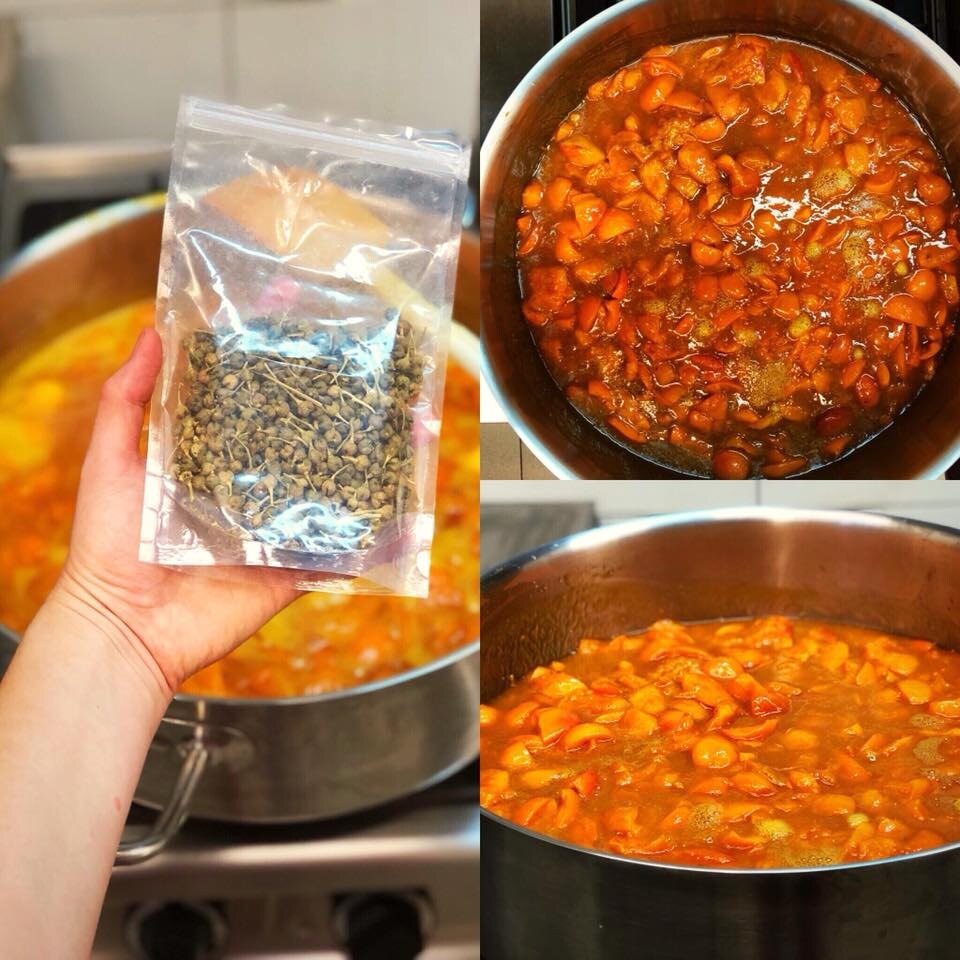 Préparation de la sauce Diablement Sucrée (force 6) Melon, pêche, mangue et piments