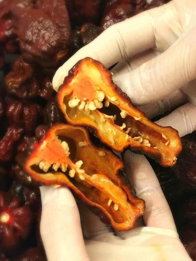 Gros plan sur les pépins avant qu'on ne les enlève. Et oui, pas de pépins dans nos sauces !